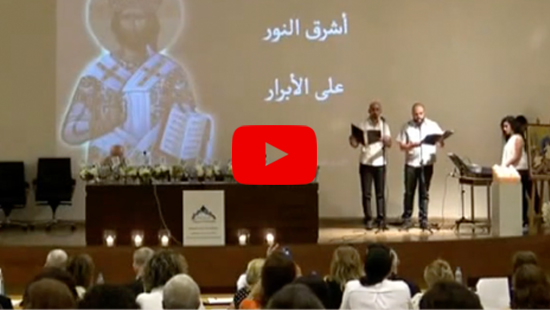 “أشرَقَ النّورُ على الأَبرار، والفَرَحُ عَلى مُسْتَقِيمِي القُلُوبْ. يَسوعُ ربُّنا الـمَسِيحْ أَشرَقَ لَنا مِنْ حَشا أَبيه. فَجاءَ وَأَنْقَذَنا مِنَ الظُلْمَه وَبِنُورِهِ الوَهَّاجِ أَنَارَنا. يَسوعُ ربُّنا الـمَسِيحْ أَشرَقَ لَنا مِنْ حَشا أَبيه. فَجاءَ وَأَنْقَذَنا مِنَ الظُلْمَه وَبِنُورِهِ الوَهَّاجِ أَنَارَنا …”